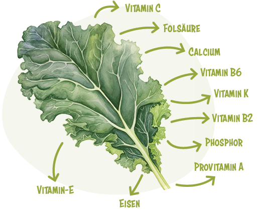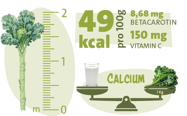 Es liefert von allen Kohlarten die höchsten Mengen an Provitamin A, Vitamin E, K, B2, Folsäure, Kalzium, Phosphor und Eisen. Dazu kommen reichlich Ballaststoffe, Vitamin C und Senfölglykoside mit entzündungshemmender Wirkung.