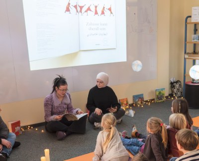 Zum bundesweiten Vorlesetag 2025 haben sich die Studierenden der Klax Berufsakademie etwas Besonderes überlegt: Die Kinder der Klax Kita Tausendfüßler kamen zu Besuch und konnten in gemütlicher Atmosphäre einer Geschichte auf Deutsch und Arabisch lauschen. Im Anschluss hatten die Kinder die Gelegenheit, sich mit den Studierenden über die Geschichte auszutauschen und in weiteren Büchern zu stöbern.