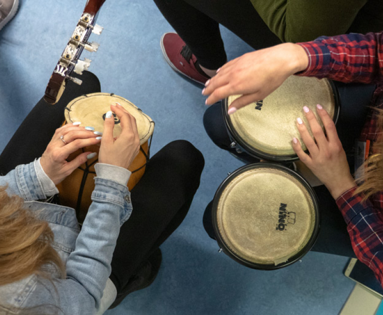 Unsere Werkstätten im Keller des Hauses können nachmittags und abends auch selbstständig genutzt werden. Ob Töpfern, Schlagzeug spielen oder ein Möbelstück bauen, hier können unsere Studierenden eigenverantwortlich ihre Ideen entwickeln und verwirklichen.