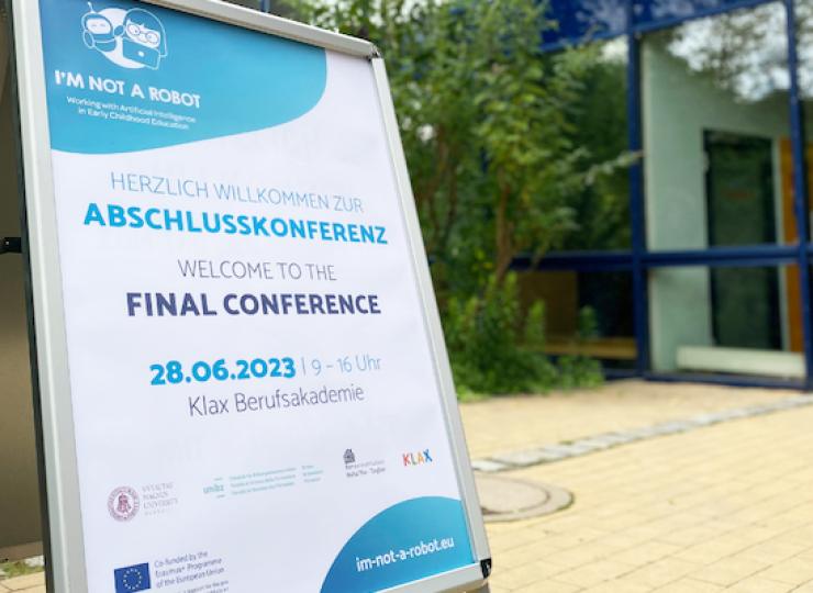 Eine vielversprechende Veranstaltung zu frühkindlicher Bildung und Künstlicher Intelligenz (KI) fand am 28. Juni 2023 in der Klax Berufsakademie in Berlin statt. Das mehrjährige durch Erasmus+ geförderte Forschungsprojekt „I’m not a Robot – Working with artificial intelligence in early childhood education“ wurde mit einer Konferenz mit rund 100 Teilnehmer*innen reflektiert und abgeschlossen. Mit dabei waren Interessierte aus Litauen, Südtirol, Dänemark, Österreich und Deutschland. Das heterogene Publikum setzte sich aus Lehrpersonal, Erzieherinnen und Erziehern, Studierenden, Spieleentwicklern und anderen Vertreter*innen von Bildungsträgern zusammen. Das eintägige, hybrid organisierte Programm kombinierte Vorträge und Workshops. Die im Projekt entwickelten Toolboxen und die dazu gehörende E-Learning Plattform wurden vorgestellt, ausprobiert und deren Anwendung diskutiert.