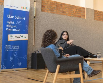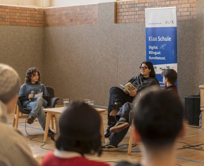 Im Rahmen des bundesweiten Vorlesetages gab Yasmine M’Barek am 21.11.2025 in der Turnhalle der Klax Schule einen lebhaften Einblick in ihr Buch. Zwei Schüler*innen aus der Oberstufe moderierten die Veranstaltung und führten nach der Lesung durch eine Fragerunde mit ihren Mitschüler*innen. Es entwickelte sich eine spannende Diskussion mit vielen persönlichen Beiträgen aus der Schulgemeinschaft. Yasmine M’Barek machte dabei deutlich: Empathie ist nicht nur Mitgefühl, sondern bedeutet auch, die Beweggründe anderer Menschen zu verstehen – ein Grundsatz, der auch im Journalismus eine zentrale Rolle spielt.