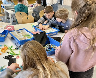 Ein weiterer Höhepunkt war der Besuch des Futuriums mit der Sonderausstellung „Ocean Futures“. Dort setzten sich die Schüler*innen mit globalen Herausforderungen wie Plastikverschmutzung, Klimawandel und Überfischung auseinander und entdeckten innovative Lösungsansätze wie das Nachpflanzen von Seegraswiesen. In einem Workshop an der Klax Schule arbeiteten gemischte Gruppen mit Lego WeDo an der Entwicklung eines Prototypen zum Schutz ausgewählter Meereslebewesen – Lernen und Experimentieren wurde so zu einem praktischen Erlebnis.