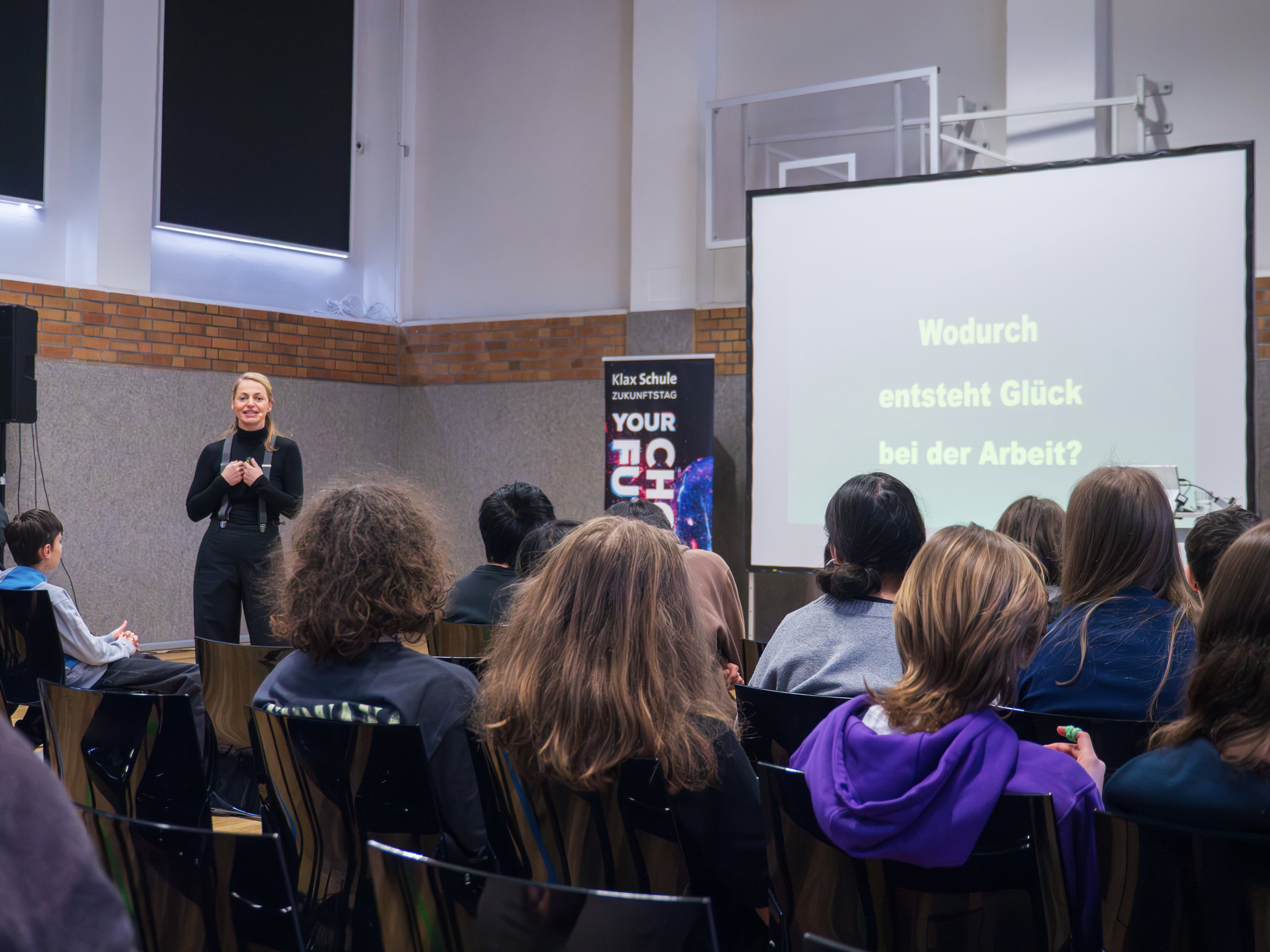 Wertvolle Impulse boten zwei Keynotes. Philosoph und Autor Christian Uhle regte zum Nachdenken über Sinn, Orientierung und Selbstverwirklichung in der modernen Arbeitswelt an. Psychologieprofessorin Ricarda Rehwaldt motivierte die Schüler*innen dazu, sich von ihren Interessen leiten zu lassen und zeigte, wie Motivation, Glück und persönliche Ziele in der Arbeitswelt miteinander verbunden werden können – passend zum Weltglückstag am 20. März.